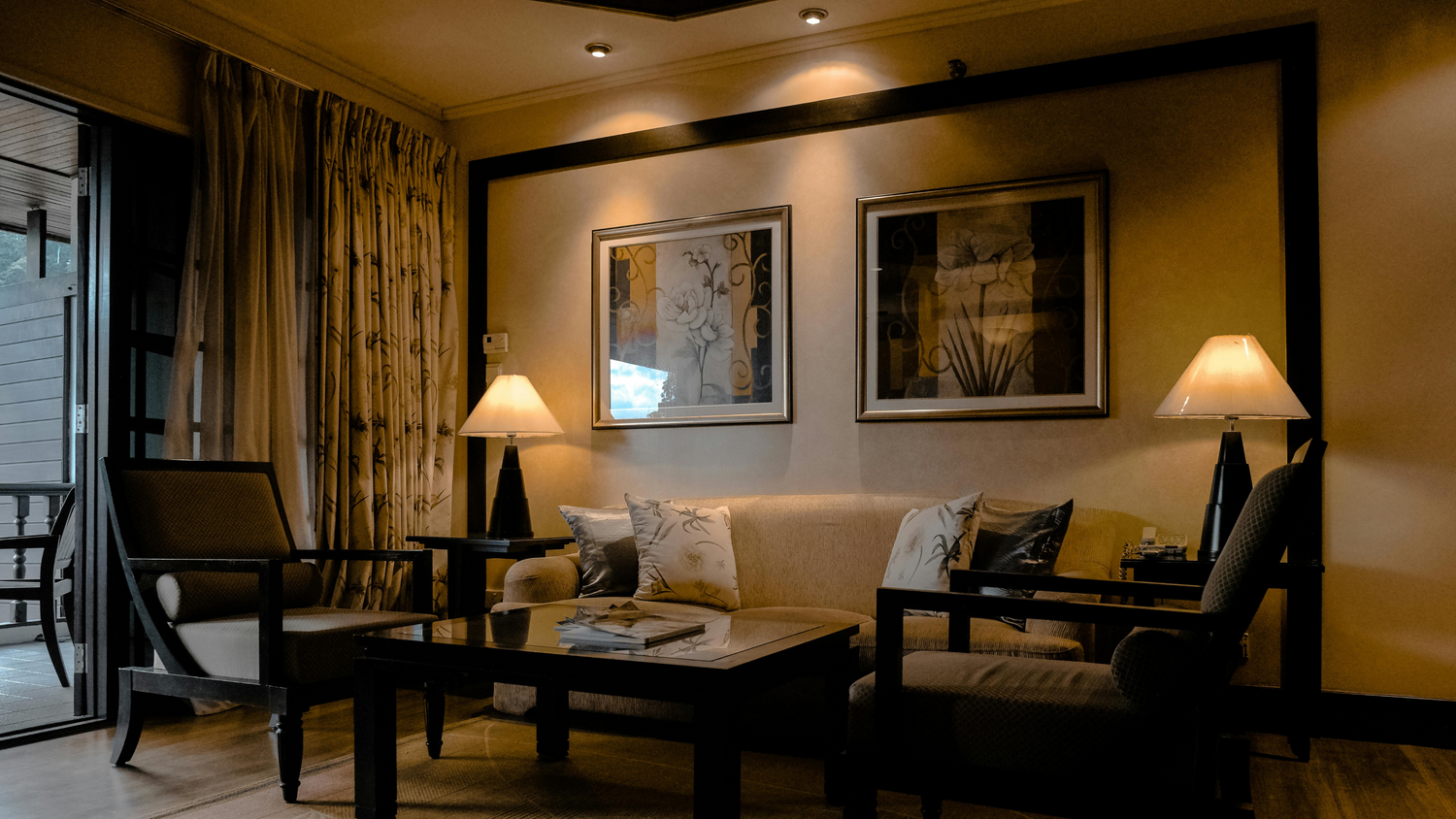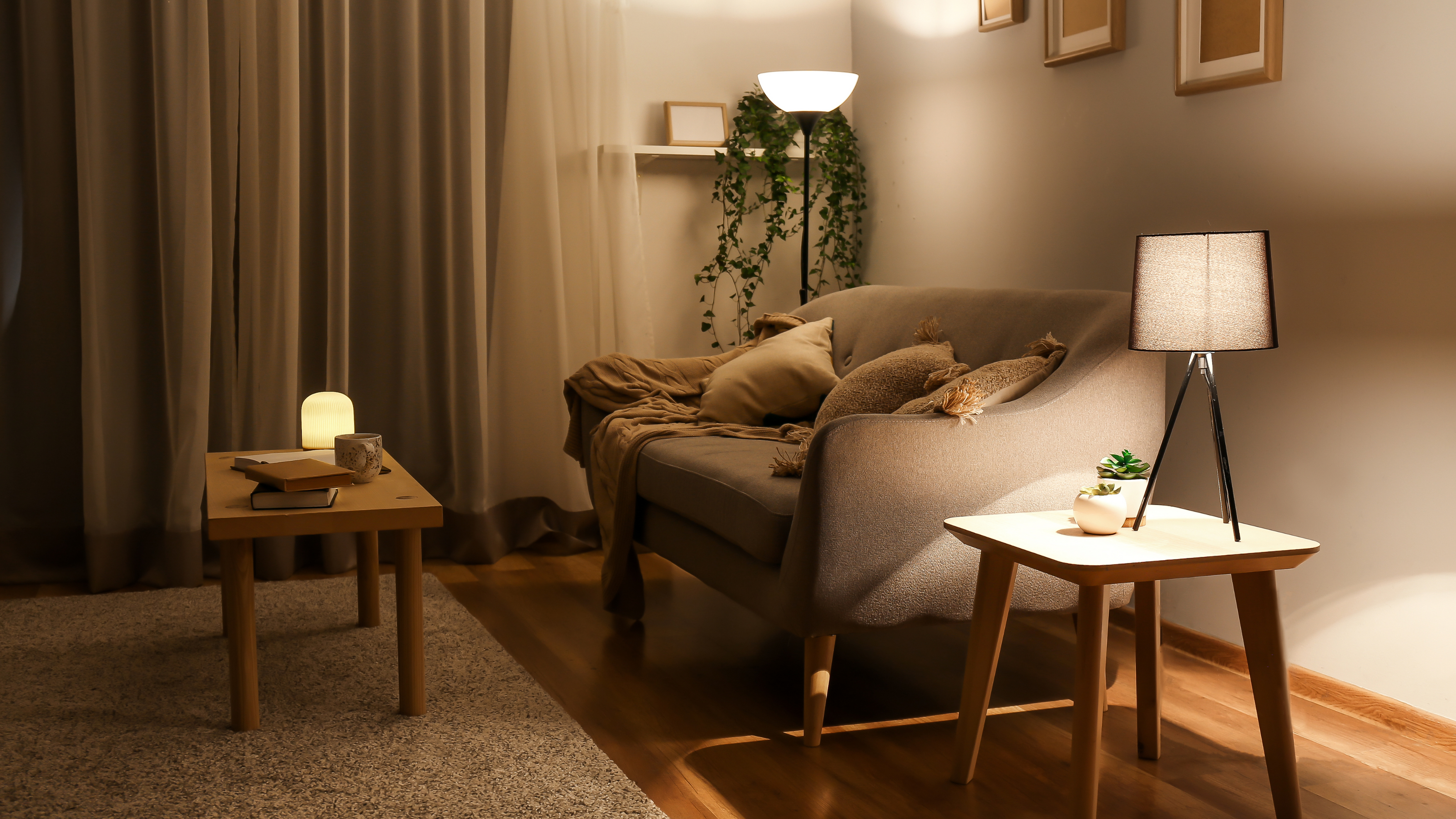 Ein stilvoll eingerichtetes Wohnzimmer mit eleganter Beleuchtung, die eine warme und einladende Atmosphäre schafft. Unsere Lampenkollektionen verbinden Design und Funktion – für ein Zuhause voller Stil und Gemütlichkeit.