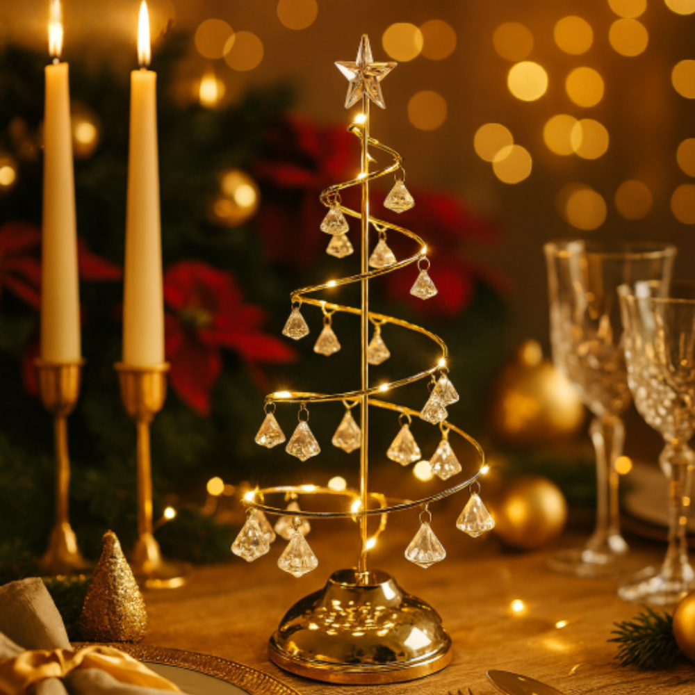 Der Crystalis™ besteht aus feinen, kristallklaren Anhängern und hochwertigen LED-Kupferlichtern, die gemeinsam ein atemberaubendes Funkeln erzeugen. Jeder Ast reflektiert das Licht wie Eis im Sonnenschein – ein wahrer Blickfang auf dem Tisch, im Regal oder auf der Kommode.