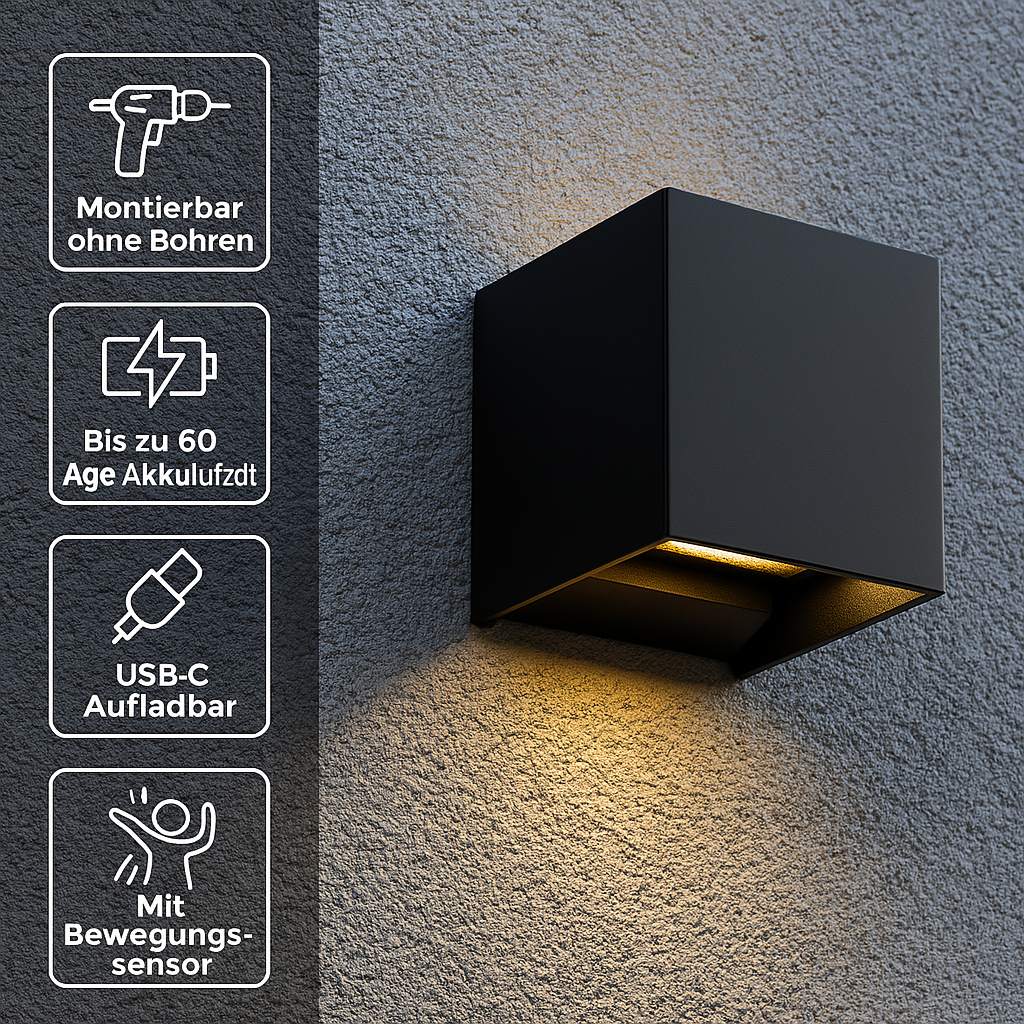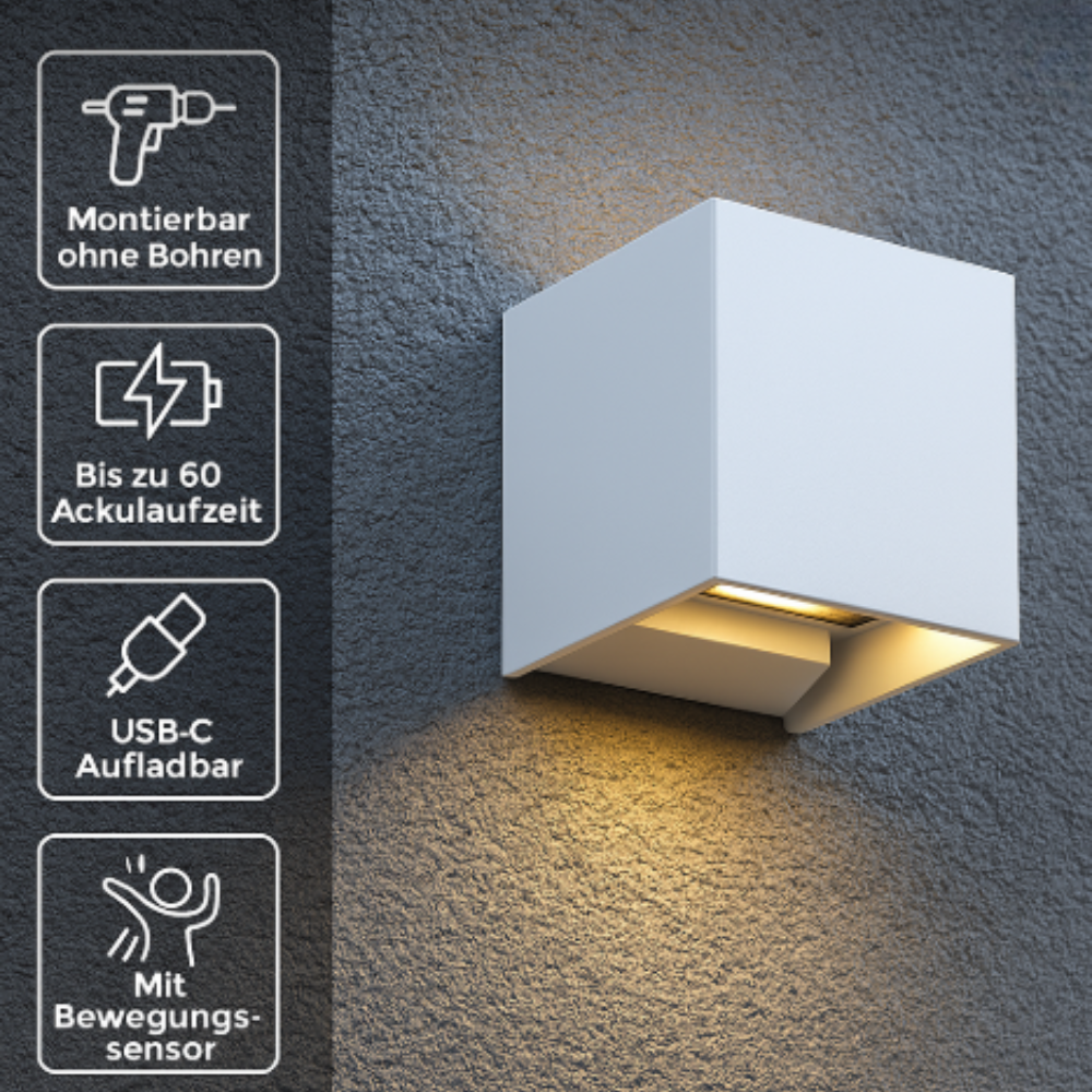 Kein Ärger mit Kabeln oder Installationen: Evolite™ ist vollständig über USB Typ-C aufladbar und wird mit einem leistungsstarken Akku betrieben, der für eine langfristige Nutzung geeignet ist. Smart, schnell und stilvoll.