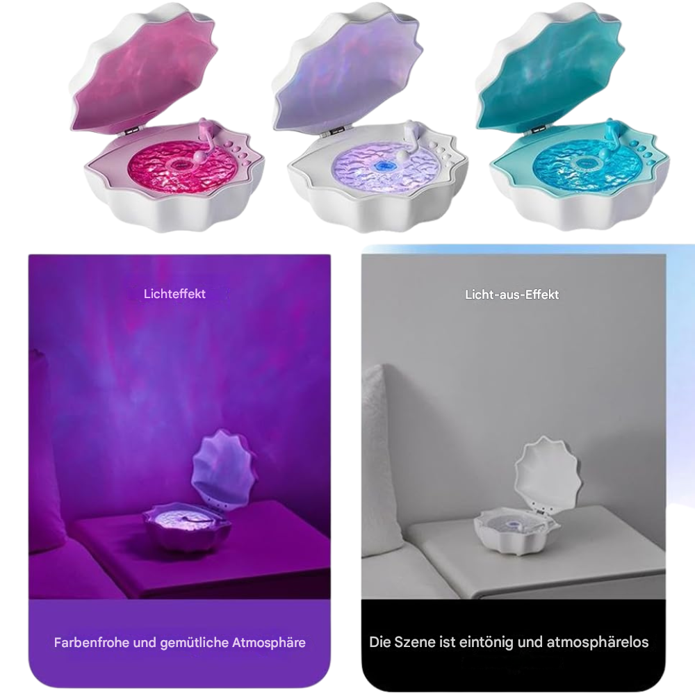 Verwandle jedes Zimmer in eine magische Unterwasser-Atmosphäre – mit dem Muschel Bluetooth-Lautsprecher mit LED-Projektor. Dieses einzigartige Nachtlicht mit Musikfunktion kombiniert beruhigende Farbbeleuchtung, 360° Sound und Projektionseffekte, die wie Wellen und Sternenlicht an der Decke erscheinen. Perfekt für Wohnzimmer, Schlafzimmer, Meditation, Entspannung und romantische Stimmung.