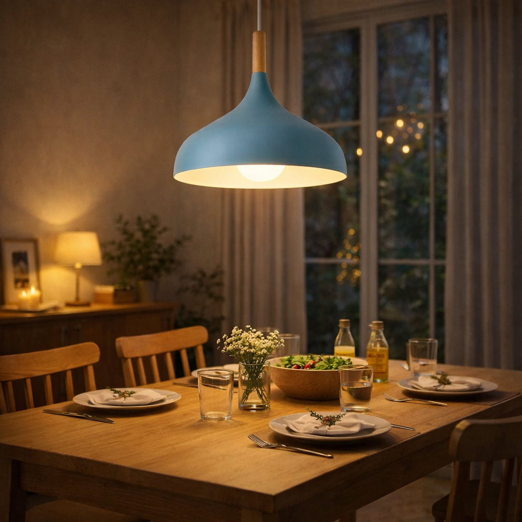 Die hochwertige Leuchte besteht aus präzise verarbeitetem Aluminium und ist mit einer E27-Fassung ausgestattet, sodass Sie das Leuchtmittel flexibel wählen können – von warmweiß für eine gemütliche Atmosphäre bis zu neutralem Licht für Arbeitsbereiche. Mit einem Beleuchtungsbereich von 5–8 m² ist sie perfekt als Akzent- oder Hauptbeleuchtung über Esstischen, Theken oder Sitzbereichen geeignet.